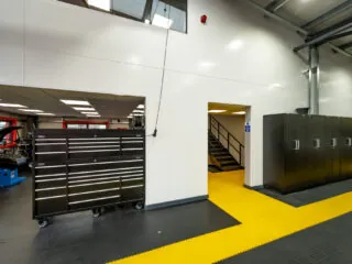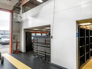 To separate the workshop from the welfare areas a jumbo partition was installed and finished with white wipe down PVC cladding for easy maintenance and cleaning.